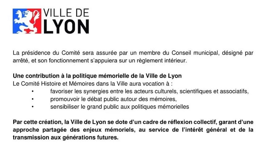 Car il lui faut satisfaire les collectifs des Algériens de France, du Moudaf — le Mouvement dynamique de la communauté algérienne établie en France, très lié à Alger —, de Devoirs de mémoire et de l’Union française des binationaux et de la diaspora algérienne, cette dernière ayant même annoncé qu’elle porterait plainte contre la Ville en cas de non-exécution ; Sylvie Tomic, l’adjointe de l’(éphé)maire de Lyon les avait d’ailleurs toutes reçues en novembre et décembre 2024.