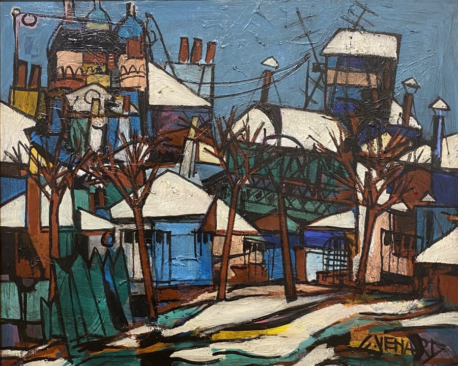 Claude Venard – Paysage enneigé 100 x 80 cm – huile sur toile