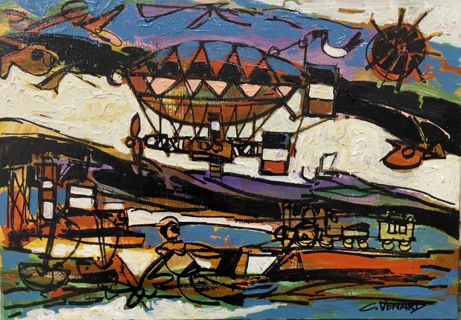 Présent dès 1935 dans les grandes expositions d’art moderne, il s’affranchit des carcans pour affiner son propre style post-cubiste en utilisant une palette colorée, appliquée au couteau. L’objectif ? Créer une matière brute, au cœur d’une esthétique géométrique. De plus en plus abstraites dans les années 50, les toiles puissantes et colorées de Claude Venard en retirent une beauté sculpturale.