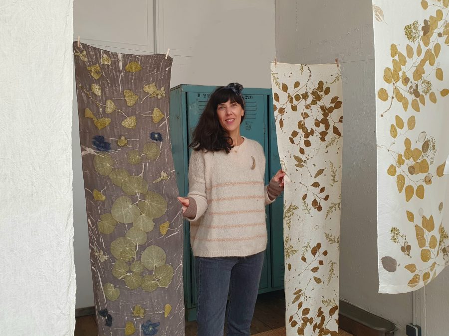 Stéphanie Kry anime des ateliers d’impression végétale pour partager et transmettre sa passion. Les participants créent leur propre foulard de soie ainsi qu’une petite décoration murale, en lin ou en coton. « C’est ouvert à tous et c’est un moment à partager en groupe », précise-t-elle.