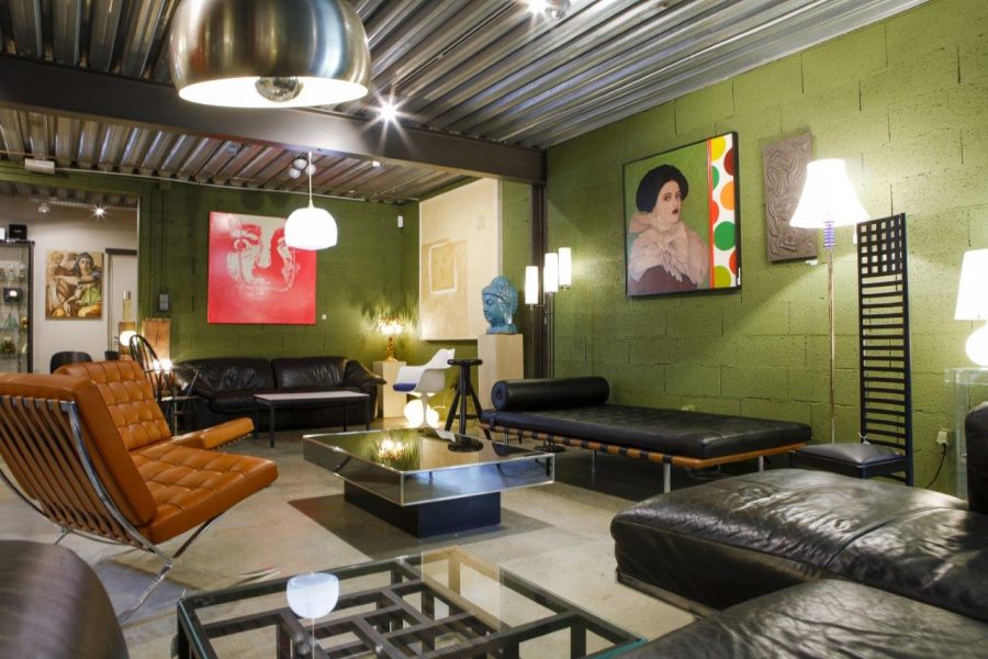 Meubles scandinaves et éclairages sophistiqués, diffusés par des palmiers de métal, fidélisent une clientèle d’architectes d’intérieur français et américains. Les décorateurs de New Boston (Texas) raffolent des miroirs aux mille couleurs et des commodes italiennes du maestro lyonnais de l’Antiquité, surpris en plein réglage de mise en scène de la chaise longue LC4 de Le Corbusier, sur l’un de ses éblouissants tapis contemporains.