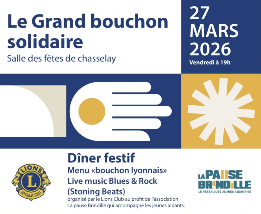 Texte : Fanny Suteau – Ce vendredi 27 mars à Chasselay, le Lions Club Lyon Val-d’Azergues organise une soirée solidaire autour d’un dîner « bouchon lyonnais », afin de récolter des fonds au profit de La Pause Brindille, association qui accompagne les jeunes aidants.