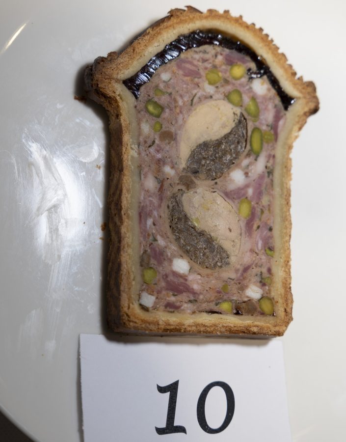 Reste que les organisateurs sont intransigeants sur les critères. Sur cette gelée censée fondre dans la bouche et cette croûte qui doit soutenir les arômes. Cela étant dit, le pâté en croûte a beau être « un plat de partage », il en devient presque une œuvre d’art, dont même le pensionnaire de la Confrérie du Pâte-Croûte, Nicolas Gagneux, hésita à couper quelques morceaux.