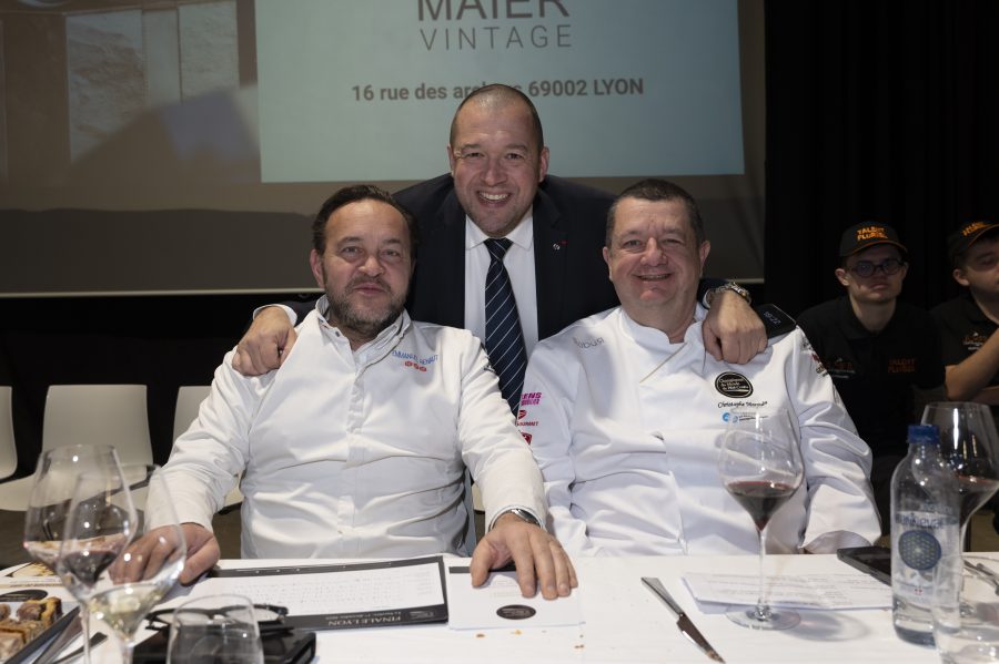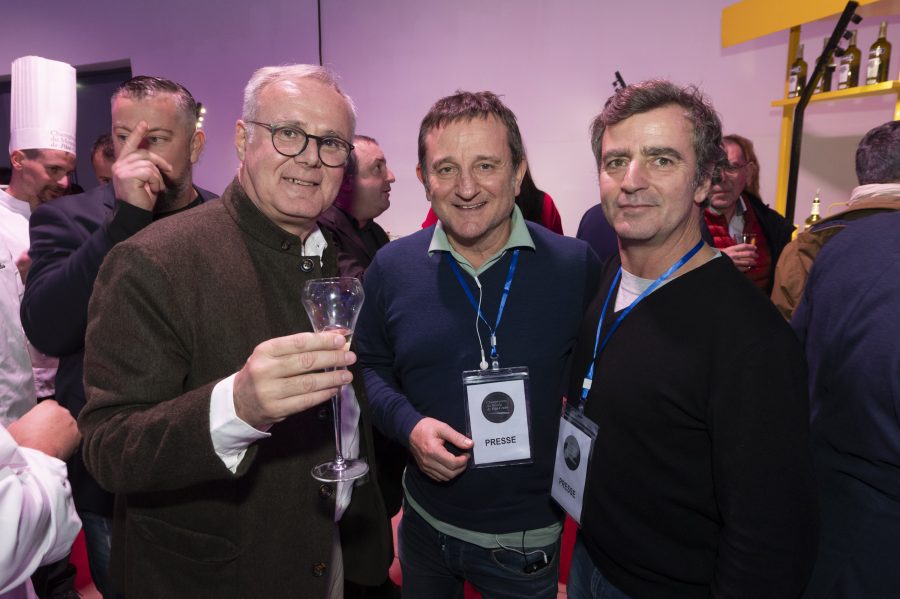 38. Guillaume Gomez, président de Groupe Gastronomie Conseils, entouré du chef Emmanuel Renaut (Le Flocon de Sel) et de Christophe Marguin, président des Toques Blanches Lyonnaises.