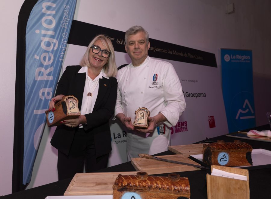 66. Laurence Fautra, vice-présidente de la Région Auvergne Rhône-Alpes et Tanguy Escandel, 1er prix du championnat de France de Pâté-croûte des écoles Hôtelières et CFA.