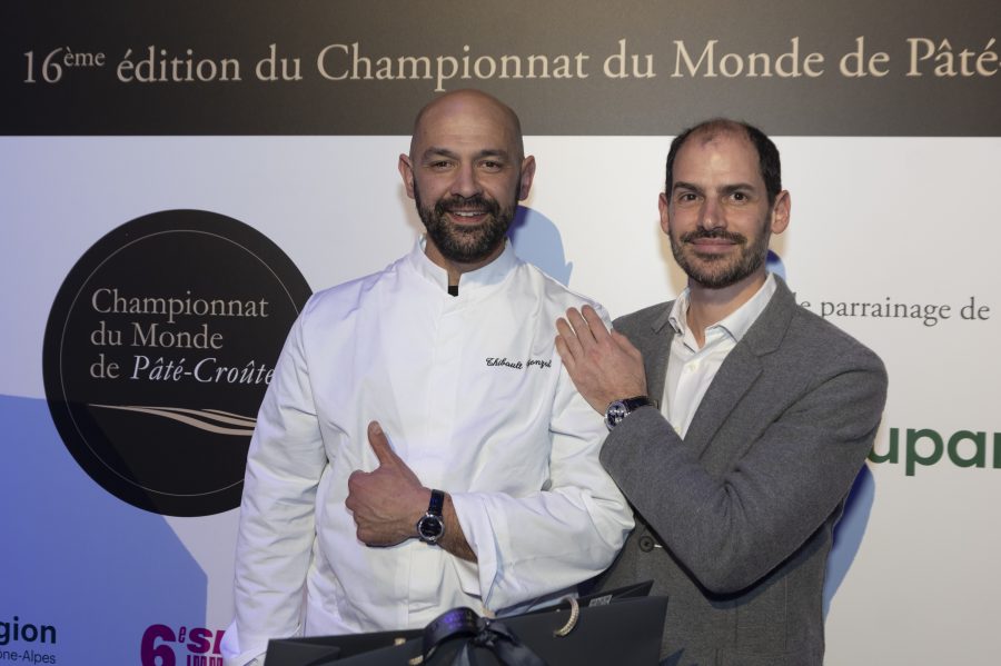 76. Le champion du monde de pâté-croûte 2025, Thibault Gonzales, récompensé par Francis Thomine, directeur général Groupama Rhône-Alpes