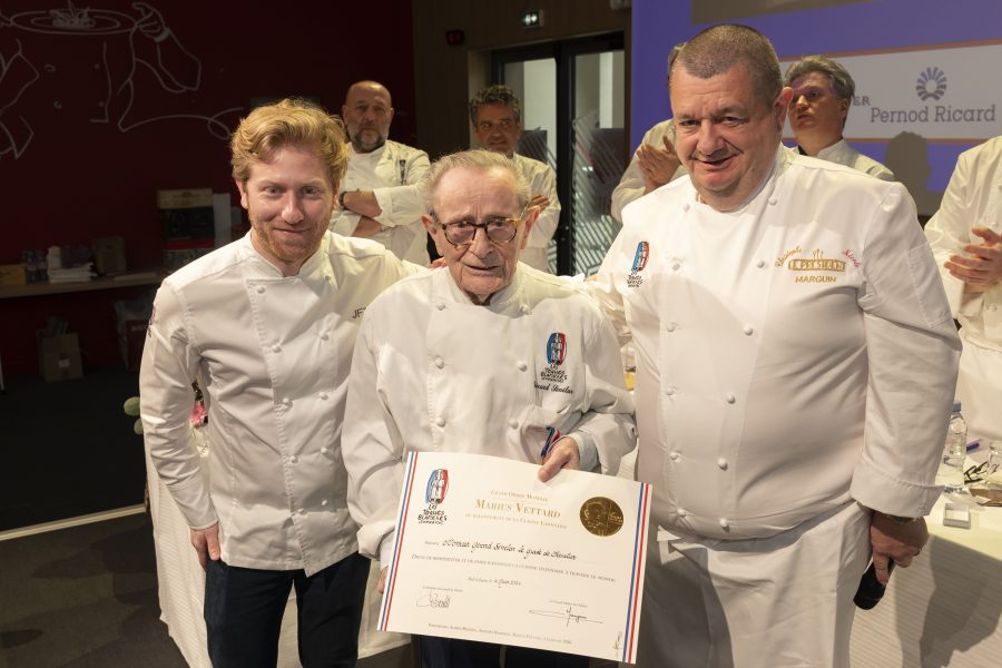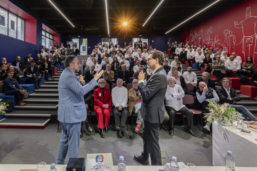 À la clé, une standing ovation pour le chef iconique du restaurant Carpe Diem et la création d’une nouvelle distinction : le titre de chevalier du Grand Ordre mondial Marius Vettard (du nom du fondateur de l’association). Un exemple de longévité encourageant, à l’heure où la profession subit les affres de la conjoncture actuelle. Et si la thématique de la transmission fut soulevée par l’ancien directeur du Tribunal de commerce de Lyon, Thierry Gardon et l’ancien député, Romain Grau, Christophe Marguin et ses troupes se sont voulus naturellement plus optimistes, s’appuyant sur les accords signés avec les partenaires.