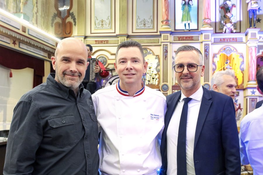 Et l’une des citations du Maître résonnait encore dans l’Abbaye à minuit : « A table avec les amis, le temps ne compte plus ! » Beaucoup d’invités conversaient toujours dans une ambiance sympathique et joyeuse ! Ils célébraient aussi les belles victoires qu’ils venaient d’apprendre : Raphaël Garel, Thibault Curioz et Nicolas Adam du restaurant Paul Bocuse ont remporté la 8ème édition du concours de la Meilleure Brigade de France présidée par le chef triplement étoilé Gilles Goujon. Ce concours récompense l’excellence du travail d’une équipe composée d’un chef, d’un commis et d’un maître d’hôtel. Thibault Curioz qui officie en salle en tant que sommelier a remporté également le Prix du Meilleur Maître d’hôtel 2024.