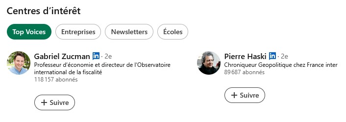 Maire écologiste de Lyon, réélu de justesse le 22 mars 2026. Ne connaissant rien au monde l’entreprise avant son élection, il a découvert LinledIn sur le tard et s’est bien rattrapé depuis. Ses deux principaux centres d’intérêt sont, sans surprise, l’économiste marxiste Gabriel Zucman (la fameuse taxe anti entrepreneurs) et le chroniqueur Pierre Haski qui officie sur… l’antenne gauchiste France Inter (ci-dessous).
