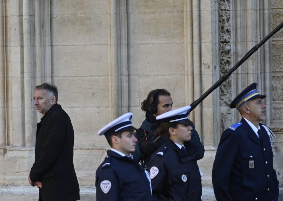 121. Gregory Doucet est extrait de l’église, soutenu par Christophe Castaner