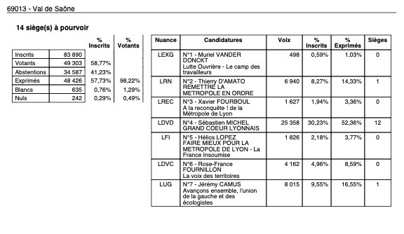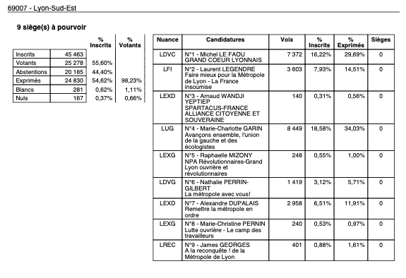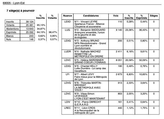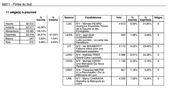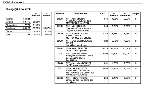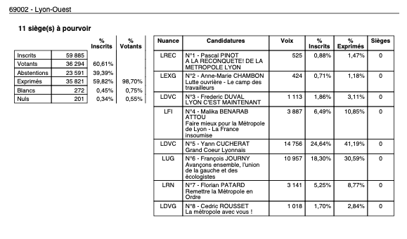 3h00 : Les résultats tombent enfin dans Lyon.