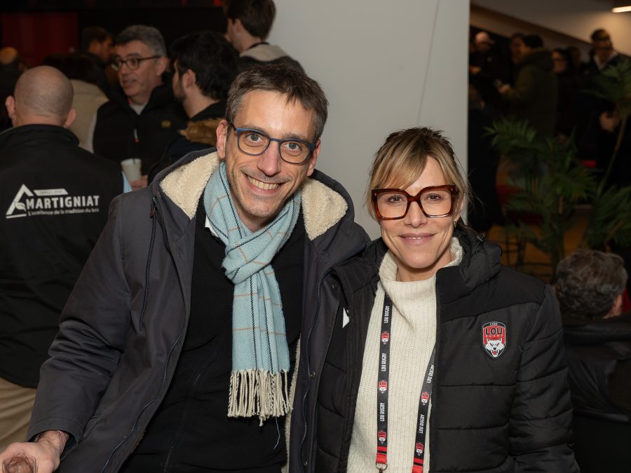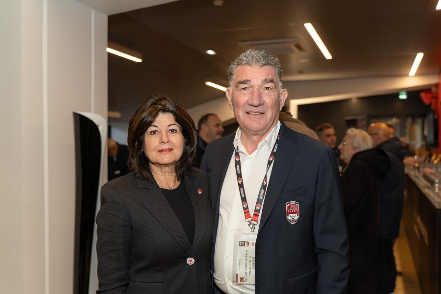 1. Pascale et Guy Mathiolon (Serfim), accompagnés de Patrick Iliou, DG du LOU Rugby