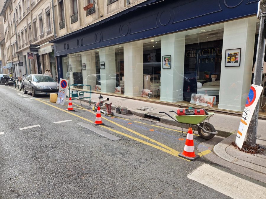 Rue Ney, angle cours Vitton, le local commercial est resté vide pendant un an. Pour souhaiter la bienvenue à Gracieuse Literie qui vient de s’installer, les écologistes suppriment la moitié des places de livraison pour installer des arceaux de vélos.