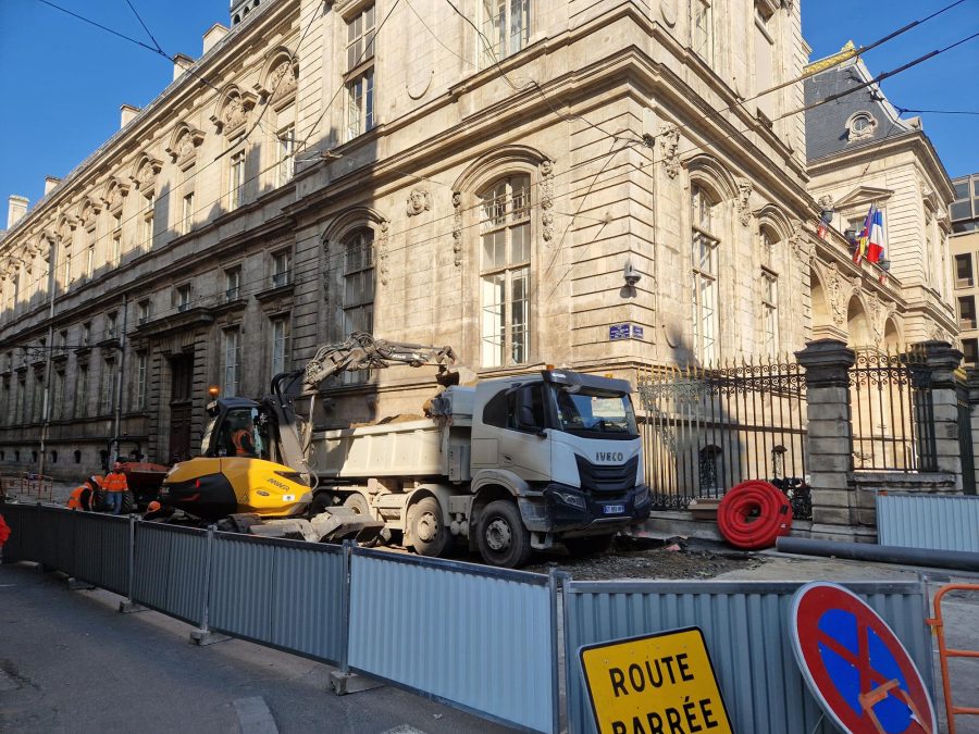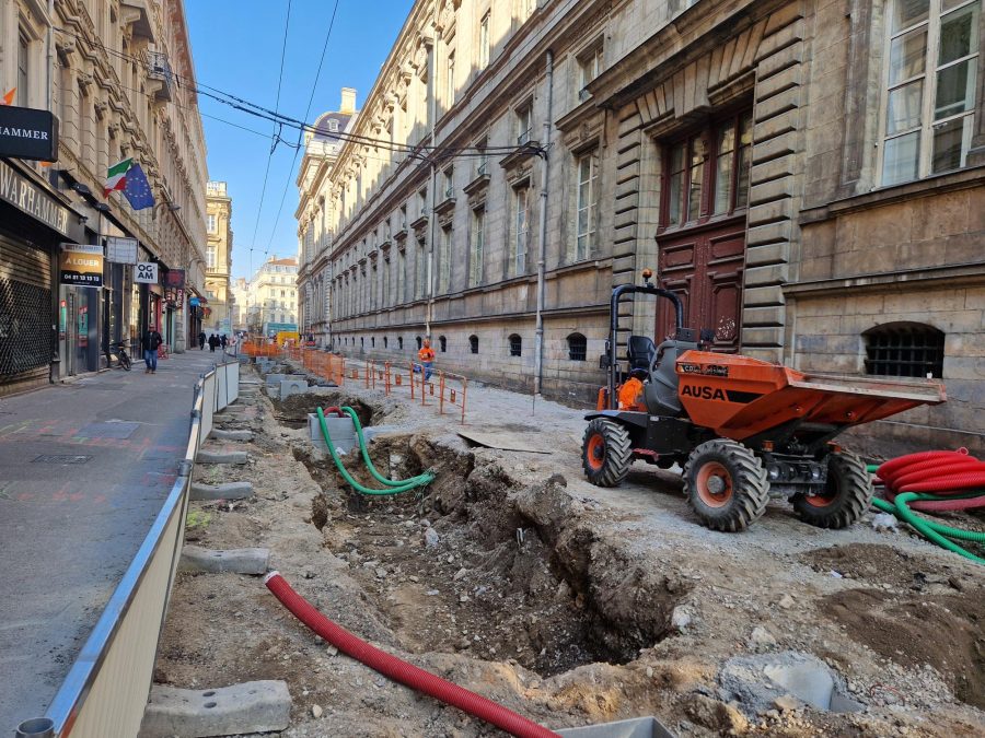 Pas étonnant donc que, ce matin encore, à la veille des élections, les ouvriers s’activaient pour éventrer la rue Joseph Serlin par laquelle transitaient les bus à perche… La manœuvre est double : envoyer un message politique aux électeurs écologistes en leur montrant que Doucet est sûr de l’emporter, et retarder la remise en place du trafic TCL en cas de défaite.