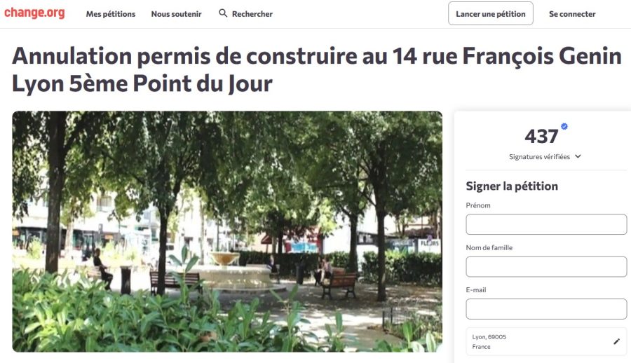 « Le problème, ce n’est pas tant que ce soient des logements sociaux. C’est qu’ils ont fait tout cela en douce. La Mairie de Lyon 5 a toujours botté en touche. Elle disait qu’elle n’était pas au courant », explique un membre du collectif Esprit Point du Jour, dont la pétition en faveur d’une annulation du permis de construire recueille actuellement près de 440 signatures.