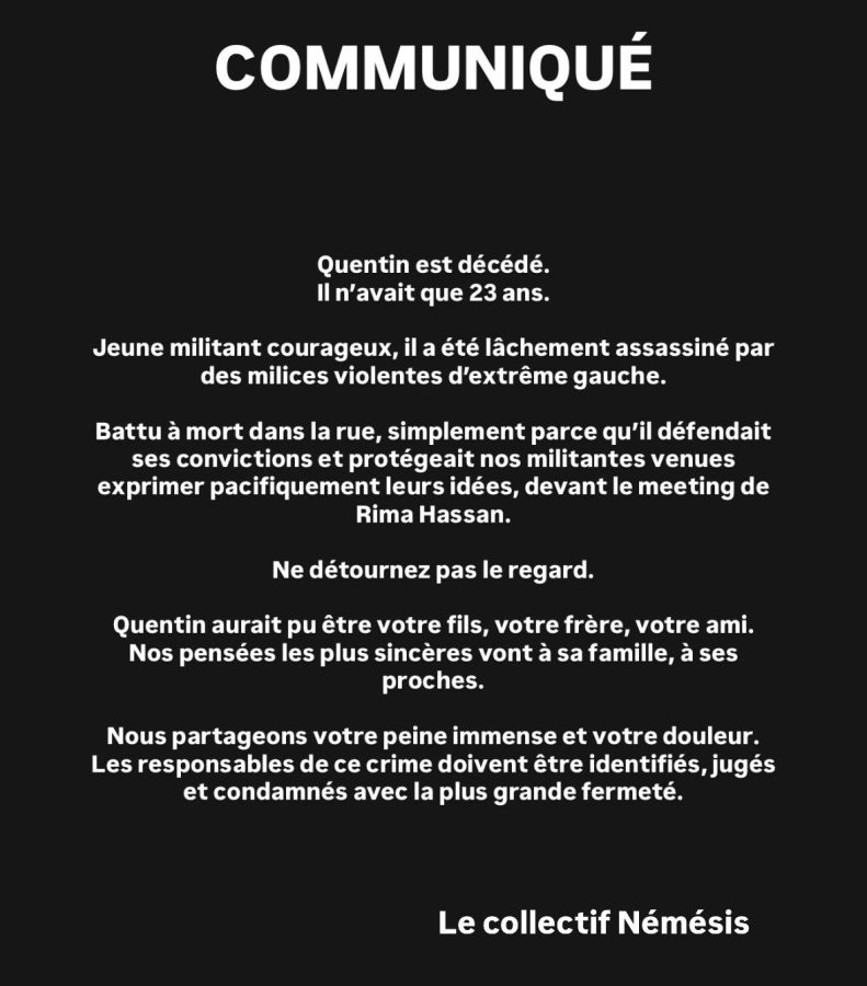 Non, c’est un homme qui n’avait rien à voir avec la Jeune Garde. C’était un étudiant de Sciences Po. Peut-être qu’il faisait partie d’un syndicat.