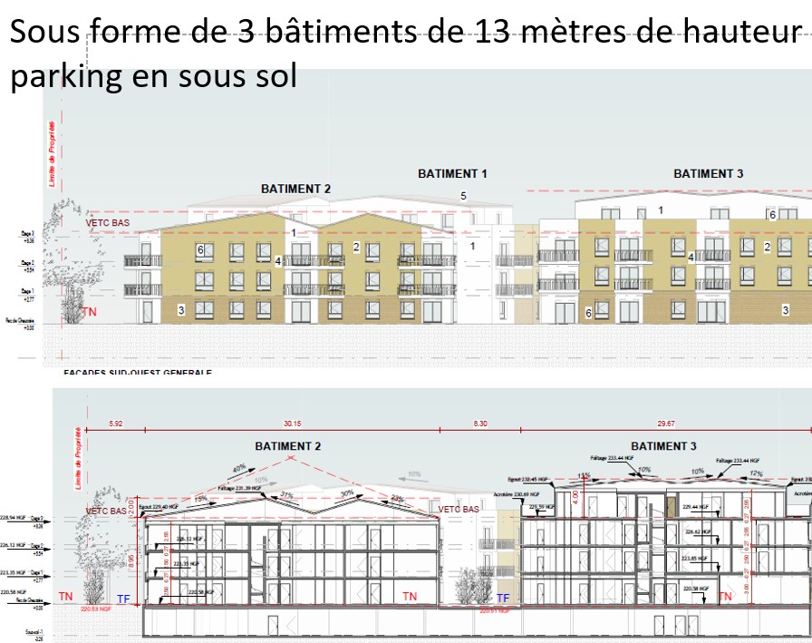 Le permis de construire déposé par Les Nouveaux Constructeurs prévoit l’édification de trois immeubles totalisant 63 logements dont 6 en accession, 19 logements sociaux (LLS) et 38 en usufruit locatif intermédiaire (ULI). Une aberration patrimoniale et environnementale pour les riverains réunis au sein du collectif « Tassin en péril » qui envisagent de déposer un recours devant le tribunal administratif.