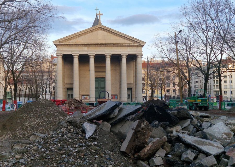 La scène pourrait prêter à sourire : l’église Saint-Pothin voit sa place mourir, avant que celle-ci ne ressuscite. Mais en attendant, le paysage semble bien loin des récits bibliques. Pour les habitants du quartier, la place Edgar Quinet paraît bien plus sujette à une vaste explosion qu’à une résurrection, tant son décor laisse apparaître de larges cratères.
