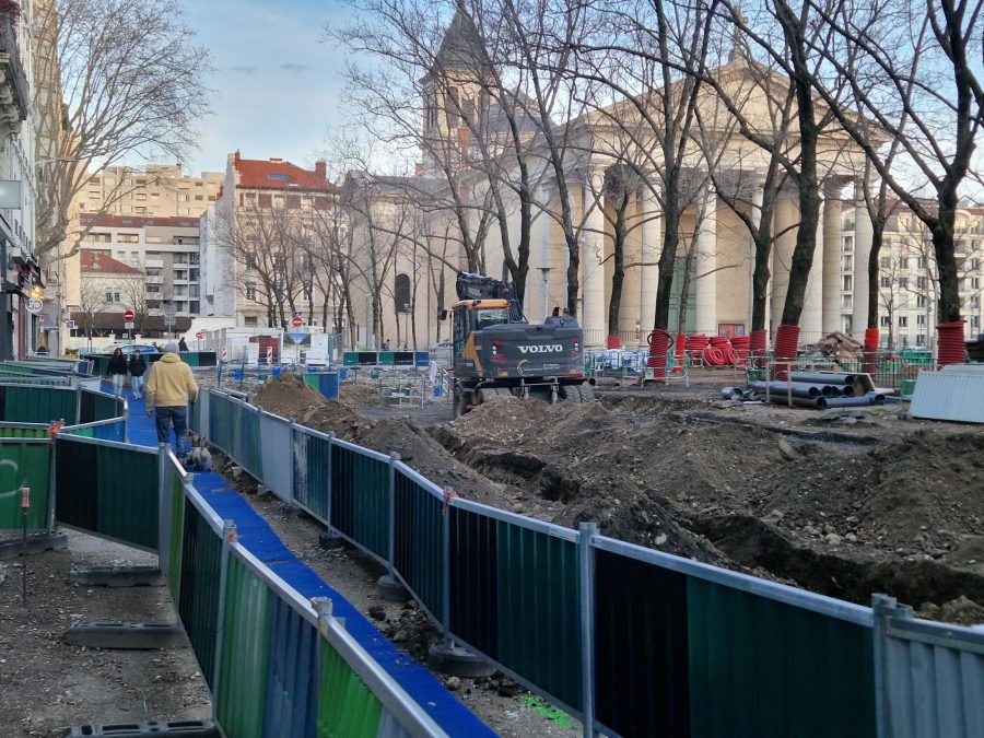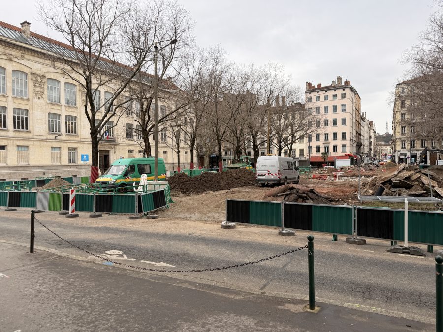 Sur place, les pelleteuses forment un balai à la mission bien définie : terminer la transformation de la place à l’horizon de l’été prochain. « Les objectifs de la modification de cet espace public sont de renforcer la végétation », écrit ainsi la Métropole pour présenter ce projet à 3,7 millions d’euros, financé à hauteur de 1,9 million d’euros par la Ville de Lyon.