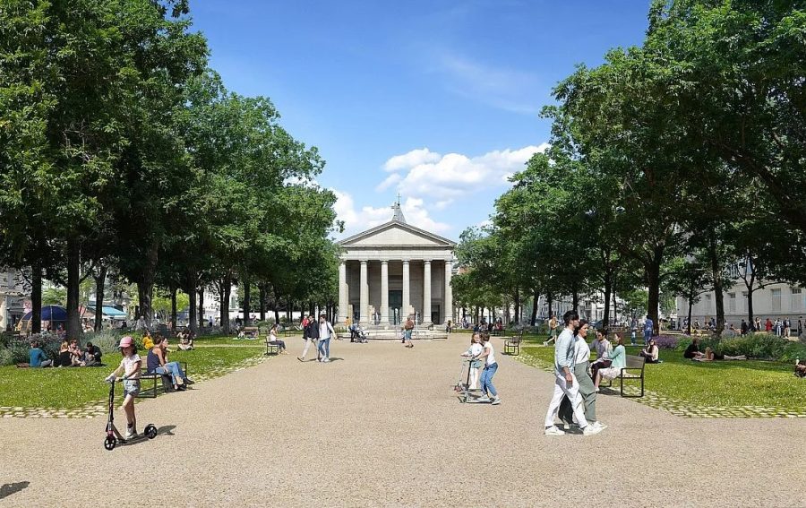 Pourtant, la place Edgar Quinet ne semblait pas être la plus mal lotie. Parents et enfants disposaient déjà d’un espace sécurisé et clôturé, de zones d’ombre et de pelouses que la Métropole et la Ville de Lyon auraient pu se contenter de réengazonner. D’ailleurs le visuel annoncé ne diffère guère de la place d’hier (ci-dessous).