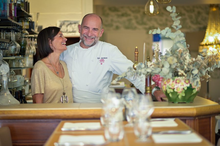 Eric Jambon littéralement galvanisé par le monde de la cuisine se jette bravement à l’eau vendant son affaire d’informatique pour investir dans le domaine des Sequoias à Bourgoin où ils sont restés quinze ans obtenant une étoile en 2014 venue récompenser leur passion.