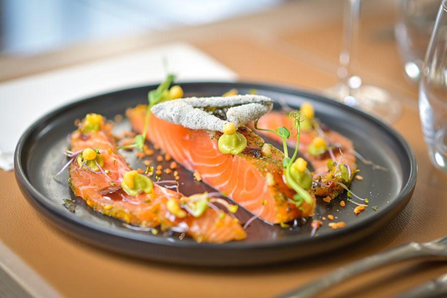 Voici notre couple de retour à Lyon pour notre plus grand bonheur et celui de Stéphanie préférant visiblement l’air du sixième arrondissement plutôt que l’altitude en Isère… Le ton est donné dès leurs trois entrées aussi magnifiques les unes que les autres : saumon mariné aux agrumes, croque jambon truffe d’été comté affiné ou carpaccio de saint jacques.