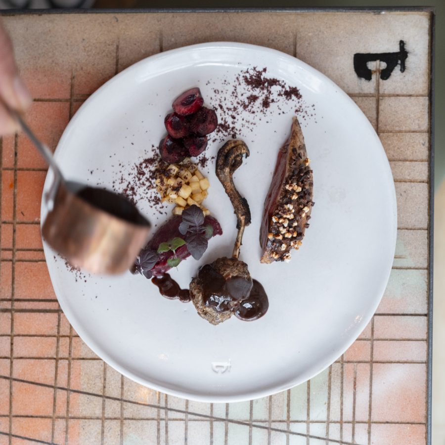 Manon chef d’orchestre de son équipe de salle, nature et professionnelle, un luminaire en mouvement. On s’assoit ? Sans tarder, on vous fera choisir votre couteau conçu par l’artisan Jean-Loup Balitrand qui servira à trancher le pain – divin – et tutoyer le beurre couleur noire, tout en papotant avec le sommelier qui dégotera dans sa belle cave tendance « nature » le verre ou la bouteille qui va bien.