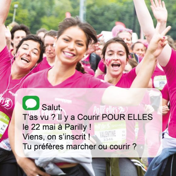 Le deuxième est un format audioguidé, du 1er au 21 mai. Munis d’un smartphone pour être orienter dans le Parc de Parilly, via l’application Courir pour Elles, hommes et femmes effectuent un parcours de 5 ou 10 km en marchant ou courant. Le tout, à la date et heure qu’ils souhaitent, en solo ou à plusieurs.