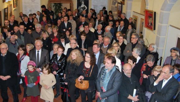On voyait aussi : le galeriste Alain Georges, le peintre Joël Réal, Caline Malnoury l’organiste souvent à l’ouvrage comme enseignante à Vourles ou derrière l’orgue du sanctuaire Saint-Bonaventure, Pierre Neyrard qui fut maire de la commune et soutien de ce projet, Sylvie et Bernard Copeaux, Jacques et Annie Gouttebarge, Eric Gouttard, Jean-Claude Gauthier, commissaire de l’hommage à Georges Rouault présenté à la Maison Ravier de Morestel à partir du 27 mars, Jean-Luc Da Passano, vice-président de la Métropole (ce qui n’excusait pas l’absence de Gérard Collomb), la fille du Dr Miguet, Alain Girin, Laurent Colin, Yves Combet, son épouse et sa fille, Gérard et Sophie Capazza, et, Patrick Marquès, qui l’an prochain sera le héros de la fête, etc… Pendant le buffet, organisé par La Toque Dauplinoise, on pouvait déguster une soupe de Champagne, préparée à partir d’une recette secrète, par les employés municipaux. Je vous engage, très vivement, à visiter cette exposition en famille ou avec vos amis. Achetez le catalogue de 96 p. (15€), il sera rapidement « collector ». Il n’y en a que 540 exemplaires.