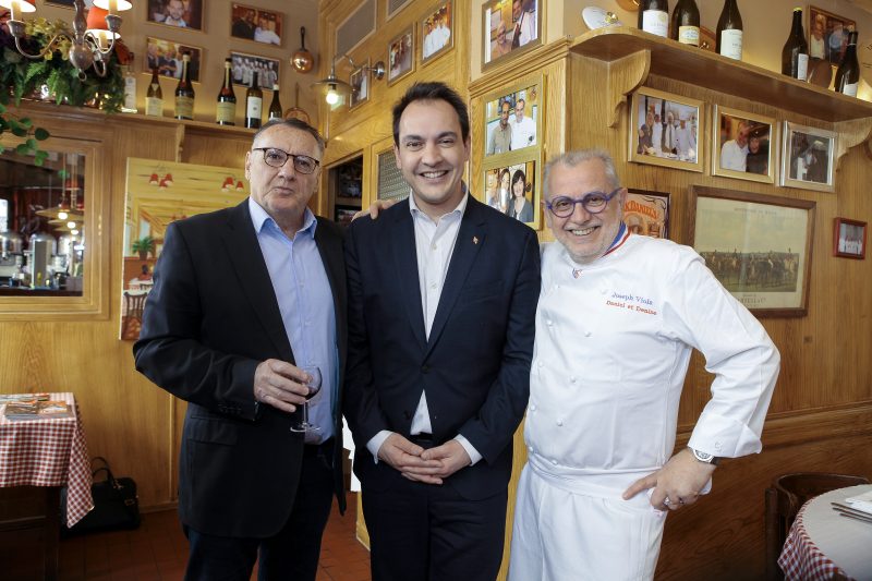 2. Olivier Canal (Bouchons Lyonnais) entouré de Patrick Deschamps et Philippe Vorburger (Authentiques Bouchons Lyonnais)