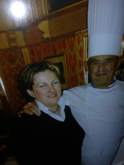 109. Célia Raby, en 2011, avec l’icône de la cuisine, Paul Bocuse, à l’Auberge de Collonges-au-Mont-d’Or.