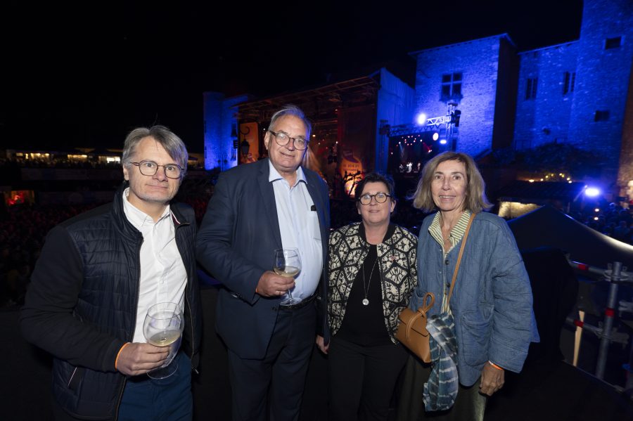 Les organisateurs : Olivier Mars, président des Vendanges Musicales, Laurent Dubuy, maire de Charnay-en-Beaujolais, Sébastien Germain, vice-président, en compagnie de Serge Luc, responsable technique