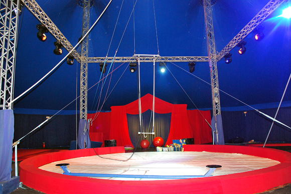 « Le cirque, c’est un rond de paradis dans un monde dur et dément. » La métaphore poétique d’Annie Fratellini, figure tutélaire des arts du cirque, a trouvé son écho chez les Massot. En particulier chez Serge et David, cofondateurs de la compagnie Imagine, qui représentent la 7ème génération d’une grande dynastie circassienne. En 2012, les frangins décident de planter leurs chapiteaux au Carré de Soie. « Nous avions ce projet en tête depuis plusieurs années », confie Serge, l’aîné. Cette inclinaison pour la sédentarité s’inscrit dans le projet urbain de dynamisation du quartier, souhaité par le Grand Lyon. Sur un terrain mis à disposition par le Sytral, à deux pas du centre commercial du « Carré de Soie » (tramway, métro), le cirque Imagine a hissé chapiteaux pour trois ans au moins. Une implantation pérenne qui permet à l’ensemble de la troupe de travailler dans la continuité pour proposer un spectacle de cirque survitaminé, composé de numéros proprement hilarants et époustouflants.