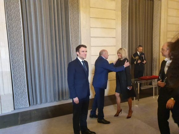 Elysée, mardi 8 mars 2022. Une cinquantaine de personnes ont investi la salle des fêtes du Palais de l’Elysée. Jusqu’à la dernière minute, les invités se sont interrogés quant à la tenue de cette cérémonie, alors que la guerre en Ukraine occupe (presque) tous les instants d’Emmanuel Macron qui cumule la présidence de la France et de l’Europe. Initialement programmée à 18h30, la remise de décoration a été décalée à 19h15.