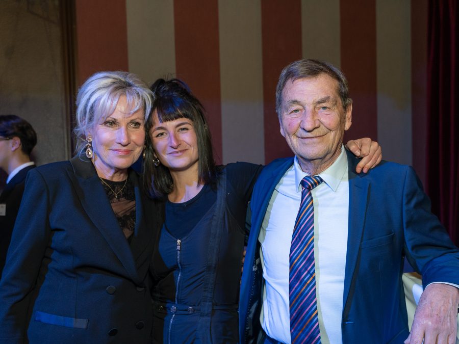 29. Pierre Delacroix (Président de France Humanitaire) entouré de son fils Ben Delacroix (musicien) et Juliette Teulier (Céline)