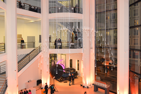 En mettant la main, en 2011, sur ce vaisseau amiral de béton et de verre de style Art déco, le promoteur lyonnais n’a pas seulement gagné devant quelques-uns des plus importants groupes français et internationaux, mais bel et bien acquis puis revisité un pan de l’histoire de Lyon. Rien que ça ! Un chantier tel que Jean-Pierre Gagneux, par ailleurs DG du groupe, “voit dans cette aventure entrepreneuriale le point d’orgue de sa carrière.” Il faut dire qu’au-delà de l’aspect patrimonial, les chiffres donnent le tournis. Jugez plutôt : 135 mètres de long, 52 mètres de large, 6 niveaux, 31 500 m² de surface au sol rénovée – « la tour Oxygène couchée », dixit le chef d’orchestre de cette rénovation – dont 16 500 m² de bureaux et 4 500 m² de commerce pour Citroën et DS-store, un hall grandiose de 15 mètres de haut (duquel découle dorénavant un lustre de 5 mètres de diamètre!), une porte monumentale à battants (rue Salomon-Reinach) reposant sur des pivots asymétriques de 140 m² et… 16 tonnes (!), deux rampes de 220 mètres chacune – une pour monter, l’autre… pour descendre, 161 places de parking, jusqu’à 3 000 personnes susceptibles à terme d’être présentes sur le site, les 26 mois de travaux de l’ex garage Citroën ont accouché d’un bâtiment à l’aura unique. « C’est un lieu qui va conserver son activité et ses caractéristiques historiques, assure Jean-Pierre Gagneux. Ses rampes frappées des chevrons de la marque, les volumes, les plafonds en béton armé – peints simplement de blanc et les ferronneries façonnées par le célèbre designer Jean Prouvé contribuent à la singularité d’un bâtiment qui fut en 1932, la plus grande station service du monde : son immortelle modernité.”