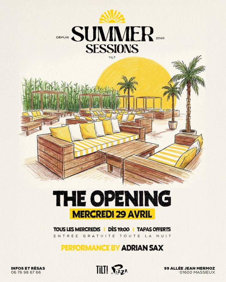 Alors la famille Castaldo a décidé de donner le top départ de cette soirée à « la vibe unique », où les tapas offerts par la maison se mêlent aux performances enthousiasmantes du saxophoniste Adrian Sax. Le tout, dessiné dans une « ambiance chic et solaire ». Pour ce nouvel opus, les équipes ont même jugé bon d’ajouter un brin de végétation à la terrasse, et voilà le Tilt en ordre de marche pour remplir ses indémodables canapés rayés.