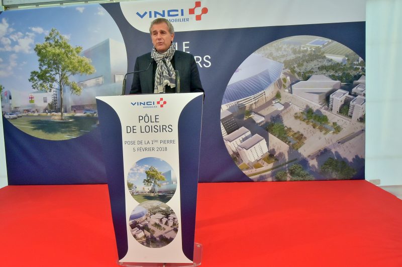 « Ce pôle de loisirs est à l’image de l’espace qu’il occupe » présente Laurence Fautra, la maire de Decines-Charpieu. Et pour cause, à mesure que les projets sortent de terre, la Smart City OL se dévoile un peu plus, à l’image de ce futur complexe de 23 000 m2 étendus sur quatre bâtiments. Sobrement intitulé pôle de loisirs, ce dernier s’inscrit dans le développement « d’un certain nombre de complémentarités ». « Nous avons essayé de créer une dynamique », dévoile le président de l’OL, Jean-Michel Aulas. Il comportera ainsi un bowling de 32 pistes – ce qui en fait le plus grand de Lyon -, un parcours ninja, une salle de sport de 2 000m2 estampillée Appart fitness, avec 280m2 dédiés aux cours collectifs et un espace balnéo avec piscine, sauna et hammam, un escape game, un parc de trampolines, une boulangerie snacking de la maison Hénon et un restaurant Ninkasi. Si divers espaces demeurent inoccupés, l’introduction de terrains de foot en salle reste « en réflexion », assure Stéphane Reymond, directeur régional de Vinci Immobilier.