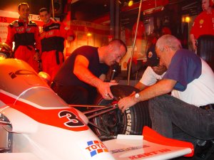 Hacine Chérifi au stand Formule 1 s'entraîne