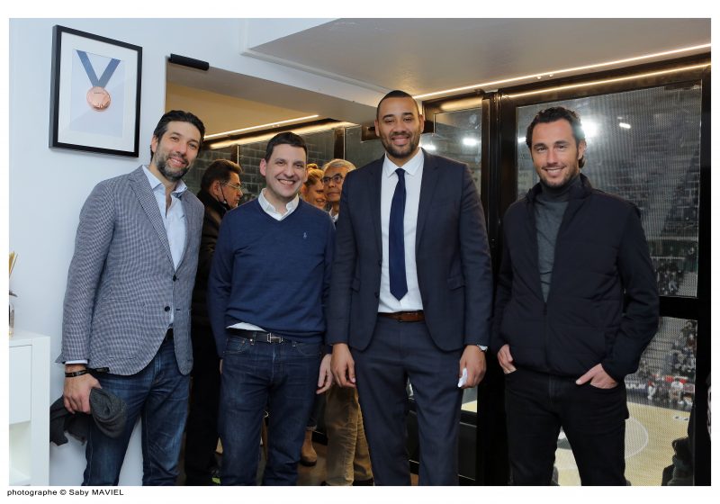 2. Maître Neal Lachmany (Earvin & Lew), Olivier de la Clergerie, directeur général du Groupe LDLC, Gaëtan Muller, président délégué de la LDLC ASVEL et Robin Haziza (T&T Padel)